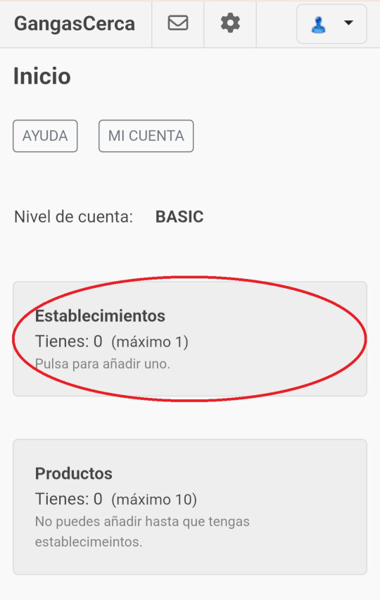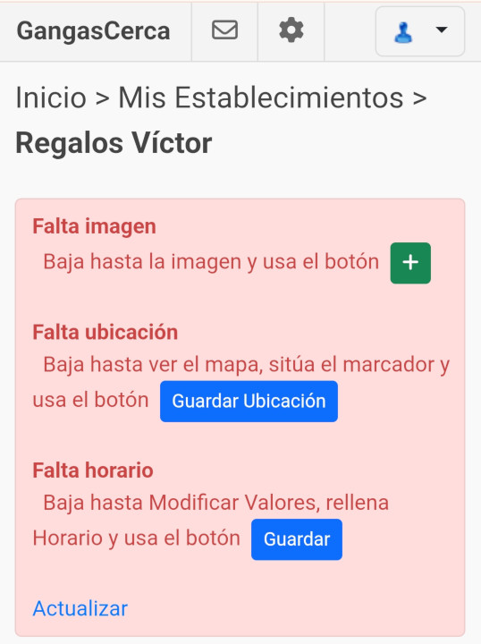 Estando en "Mis Establecimientos", pulsa sobre un establecimiento recién creado (verás que se indica que le faltan algunos datos).
