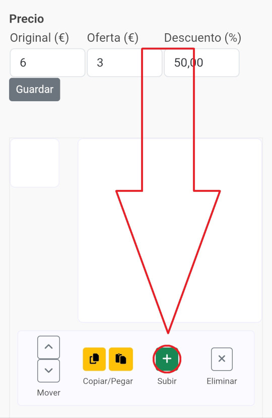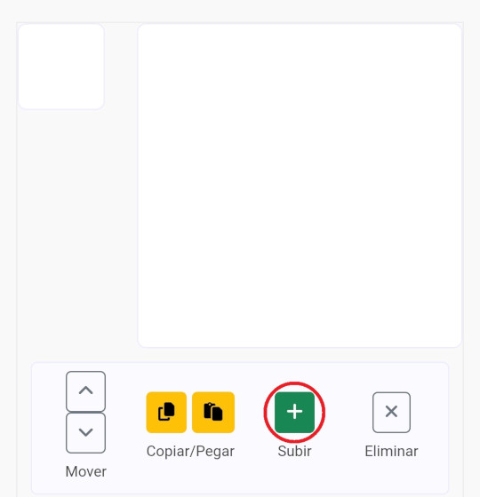 Nota: cuando ya hay fotos, aparecerá un botón "Subir (antes)" y otro "Subir (después)", para que la foto aparezca antes o después que la actual.
